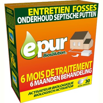 Verwijder geurtjes en opstoppingen met het 6 maanden plan van Epur. De biologische activator (750 gram) onderhoudt septische putten, zinkputten en vetafscheiders.