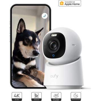 De Eufy E30 solocam binnencamera werkt volledig zelfstandig, zonder HomeBase of extra accessoires. De beelden worden lokaal opgeslagen op een microSD-kaart tot 128 GB (niet inbegrepen). Je hebt dus geen abonnement nodig en je beelden blijven privé. De camera is bovendien compatibel met Apple HomeKit, waardoor hij eenvoudig in je slimme woning te integreren is. Zo combineer je betrouwbare beveiliging met gebruiksgemak en privacy, allemaal via één app.