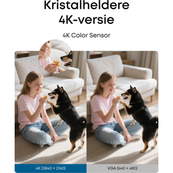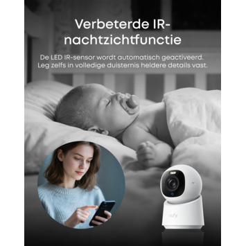 Met de Eufy E30 solocam binnencamera hou je moeiteloos een oogje in het zeil in huis. Deze slimme wifi beveiligingscamera filmt in haarscherpe 4K UHD-resolutie, waardoor je elk detail duidelijk ziet. Dankzij de Pan & Tilt-functie draait de camera automatisch of handmatig mee, zodat geen enkel hoekje onzichtbaar blijft. Ook in het donker zorgt het geavanceerde kleurennachtzicht voor heldere beelden, alsof het dag is.