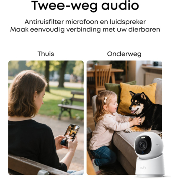 De Eufy Security Indoor Cam E30 is uitgerust met AI-detectie die mensen en huisdieren van elkaar onderscheidt. Zo krijg je alleen meldingen die ertoe doen. Ideaal als je huisdieren hebt of wilt weten wie er thuis is. De camera volgt beweging automatisch, zodat je altijd weet wat er gebeurt, of je nu boven bent of niet thuis. De tweewegcommunicatie maakt het mogelijk om direct te praten via de ingebouwde microfoon en luidspreker.