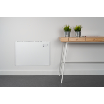 De Eurom Alutherm 1000 Wifi is een strak vormgegeven, witte convectorkachel die in elke woning past. Deze verwarming wordt bevestigd aan de muur, en is dus perfect als permanente verwarming.
