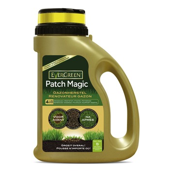 De Evergreen Patch Magic is een mengel van graszaad, meststof en potgrond. Deze 4-in-1-formule is ideaal om ernstig beschadigde zones in jouw gazon te herstellen (bijvoobeeld onder de schommel van de kinderen, onder het opblaasbaar zwembad, enz.) Met de Evergreen Patch Magic heb je in een mum van tijd weer een gezond en mooi groen gazon.