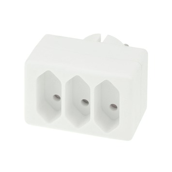 Deze driedubbele dominostekker van Exin in de kleur wit heeft een nominale stroom van 2,5 A en een aansluitingsvermogen van 1.700 watt. Verkrijgbaar in verschillende kleuren.