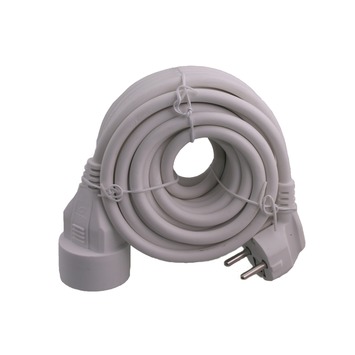 Exin heeft verlengsnoeren in (bijna) alle lengtes en verschillende kleuren. Dit witte snoer uit kunststof heeft drie aders met een aderdikte van 1,5 millimeter, een lengte van 10 meter en een nominale spanning van 230 volt.
