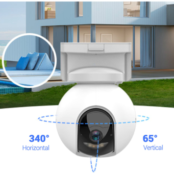 De Ezviz HB8 beveiligingscamera voor buiten 2K+ een draadloze camera voor buiten die je beelden in 2K+ kwaliteit laat zien. Dankzij de draaibare kop kan de camera 360 graden draaien. Zo mis je niets van wat er rondom je huis gebeurt. De camera werkt op een batterij die wel 210 dagen meegaat en slaat beelden op dankzij het ingebouwde geheugen van 32 GB.