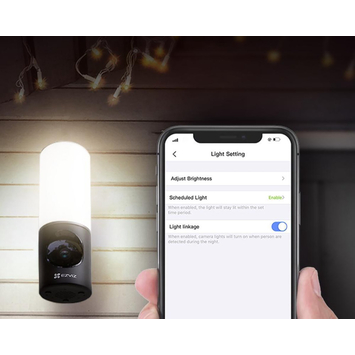 De LC3 is een krachtige 4MP beveiligingscamera met spotlight, die je huis dag en nacht veiliger maakt. Tevens functionerend als slanke wandlamp, past de LC3 in elk huishouden om donkere plaatsen te verlichten met op afstand te besturen slimme bedieningselementen. De LC3 biedt AI-aangedreven persoonsdetectie, actieve verdediging en tweewegaudio om effectief te waken over buitenruimtes zoals patio's, gangen, binnenplaatsen, enz. Instelbare helderheid met eenvoudige bediening via de app. Met een instelbare wandlamp van maximaal 700 lumen, biedt de LC3 eenvoudige, energiebesparende verlichting op maat met eenvoudige bediening via de EZVIZ-app. Gebruik de LC3 om uw aankomst thuis te verlichten, een aangename sfeer in de achtertuin te creëren of een hoorbare waarschuwing te geven bij menselijke of bewegingsdetectie. De keuze is aan jou.