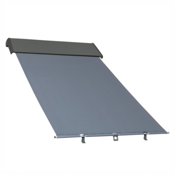 Deze buitenzonwering biedt tot 8 keer effectievere bescherming tegen zonnewarmte dan een binnenzonwering. Heeft een effectieve schaduwwerking terwijl het licht nog in de ruimte kan binnendringen en is bestand tegen alle weersinvloeden. Bovenkast in RAL 7022. Doek in kleur 089.