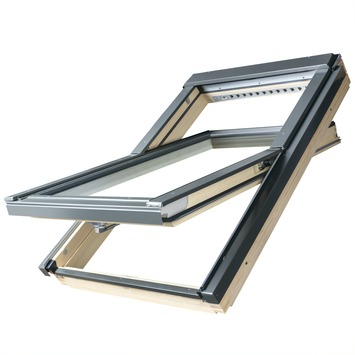 Het houten Fakro dakraam type P2 van 55 op 78 centimeter is door z'n veelzijdige eigenschappen multi-inzetbaar. Het dakvenster heeft een tuimelas in het midden van venster raam en beschikt over onderbediening, zodat je het venster makkelijk kan openen. Ideaal als je extra veel daglicht wil verwelkomen in je favoriete kamers.