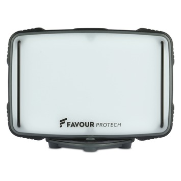 De L0927 van FAVOUR is een stevige werklamp die je voorziet van een gigantische lichtopbrengst. De lichtopbrengst varieert tussen 420 en 1350 lm en de batterij gaat tot 11 uur mee. De bouwlamp heeft zo'n 7,5 uur nodig om op te laden via de USB ingang. Regelmatig laden is geen enkel probleem. Na 500 keer laden bezit de lamp nog steeds 80% van zijn capaciteit. Op de achterzijde van de lamp zitten krachtige magneten waarmee je hem eenvoudig bevestigt aan een driepoot of andere stalen voorwerpen. Ook kan de lamp wel tegen een stootje. Hij is uitgerust met inox lensbeschermers en een rubberen schokbumper. Hij is tot 2 meter valbestendig, is stof- en waterdicht (IP67 rating) en je dompelt hem probleemloos tot één meter onder water. Onmisbaar op de bouwplaats en past in elke gereedschapskoffer.