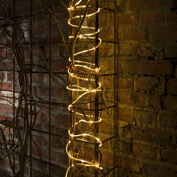 Maak het snel en simpel feestelijk gezellig in je huis en buitenruimte met deze decoratieve, flexibele en energiezuinige extra warmwitte LED lichtslang op batterij. Deze 10 meter lange sfeermaker die geschikt is voor binnen- en buitengebruik laat zich eenvoudig wikkelen of verwerken in groen. Een stroomaansluiting is niet nodig dus je kunt de lichtslang overal gebruiken met optimaal gebruiksgemak. De lichtslang zorgt voor een gezellig, feestelijk tintje bij speciale gelegenheden in het voorjaar of in de zomer: een barbeque of tuinfeest. In de winterperiode is deze lichtslang op batterij tijdens de decembermaand ook bij uitstek geschikt voor verlichting van de buitenruimte of een (kerst)boom. De 130 mini LED-lampen in de lichtslang zijn transparant van kleur en zijn duurzaam en energiezuinnig. De lichtslang is voorzien van een ingebouwde automatische lichtsensor in combinatie met een 6- en 9-uurs timer. Wordt het donker dan schakelt de ropelight zichzelf in gedurende naar keuze 6 of 9 uur. In de 24uurs cyclus schakelt de lichtslang vervolgens automatisch weer uit gedurende 18 of 15 uur uit. Zo gaat de lichtslang efficient om met je batterijcapaciteit. De lichtslang werkt op een batterijcompartiment voor 4x D batterijen (niet meeggeleverd) dat geschikt is voor buitengebruik (IP44) en kan zonder gereedschap worden geopend en gesloten. De ruime kabeldiameter garandeert een hoge trekbelasting.