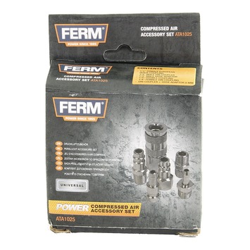 Ferm maakt luchtgereedschap voor allerlei toepassingen. Sluit je luchtgereedschap moeiteloos aan op de luchtslang van je keuze dankzij deze zesdelige accessoireset.