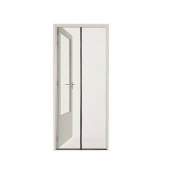 U kunt zonder extra handelingen door deze magneethor heen lopen. De lamellen vallen weer netjes op hun plaats en door de magneetstrips wordt de hor goed afgesloten. De klittenbanden waarmee de hor op het kozijn gekleefd zit, zijn netjes afgewerkt met lichtgrijze kunststof strips.