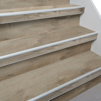 Met traprenovatie in de kleur eiken grijs bekleed je eenvoudig je trap in 1 dag. Om de trap te renoveren heb je traprenovatie-sets nodig en sets met trapneusprofielen.