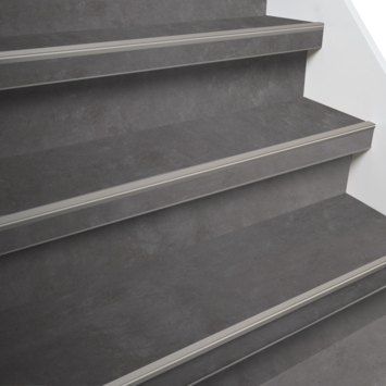 Met traprenovatie in de kleur beton grijs bekleed je eenvoudig je trap in 1 dag. Om de trap te renoveren heb je traprenovatie-sets pvc nodig en sets met trapprofielen pvc.