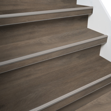 Met traprenovatie in de kleur bruin eiken bekleed je eenvoudig je trap in 1 dag. Om de trap te renoveren heb je traprenovatie-sets pvc nodig en sets met trapprofielen pvc.
