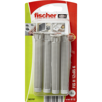 Deze FIS H 12x85 K injectiehulzen van Fischer zijn handig ter bevestiging van: hekwerk, leuningen, gevelsystemen, luifels, televisie en houten constructies. De injectiehulzen zijn 85mm. Gebruik voor het boren van het gat een boor met een diameter van 12mm. De injectiehulzen zijn verpakt per 4 stuks. De hulzen zijn gemaakt door het familiebedrijf Fischer. De oprichter, Artur Fischer, vond meer dan 50 jaar geleden de nylon plug uit. Inmiddels is het bedrijf uitgegroeid tot een wereldwijde speler op het gebied van bevestigingssystemen.