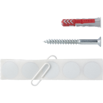Deze RB 6x30 schapbevestigingsset van Fischer bevat precies wat u nodig hebt om schappen of planken stevig aan de muur vast te maken. Door schappen of planken op te hangen, kunt u op een klein oppervlak veel opbergruimte creëren. De constructiepluggen zijn 30mm, de bijgeleverde deeldraadschroeven zijn 45mm lang en hebben een diameter van 4,5mm. Gebruik deze schroeven in combinatie met bitje PZ2. Voor het boren van het gat hebt u een boor nodig met een diameter van 8mm. Eén verpakking bevat 12 pluggen inclusief deeldraadschroeven en stickers.