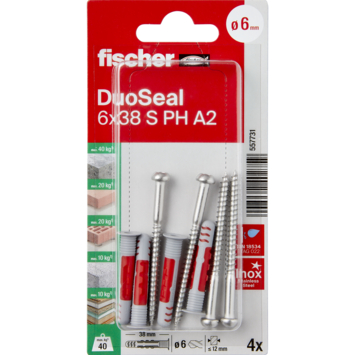 Fischer duoseal bolkopschroef A2 RVS 6x38 mm 4 stuks