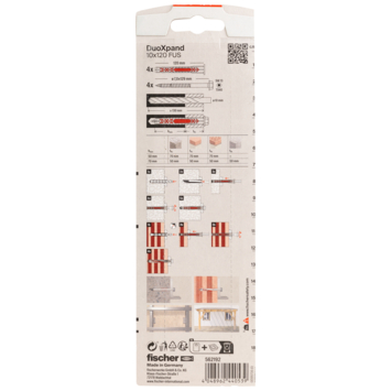 De fischer Constructieplug DuoXpand met dubbele verankeringsdiepte is gecertificeerd voor meervoudige bevestiging van niet-dragende systemen in beton, metselwerk én cellenbeton. Dankzij de speciale geometrie en het gebruik van verschillende kunststoffen, past de plug zich perfect aan de ondergrond aan. De DuoXpand met verzonken kop is zeer geschikt voor het bevestigen van houten aanbouwdelen in metselwerk of beton.