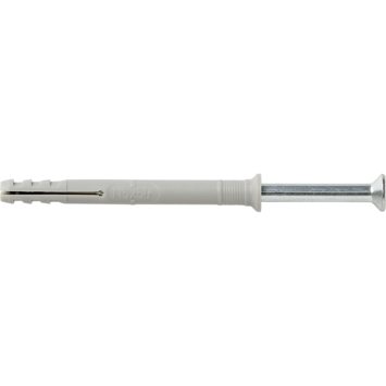 Deze N 5x50mm/25 S slagpluggen van Fischer zijn geschikt voor verschillende soorten materialen zoals beton, wandverbinding en metaal. Slagpluggen, ook wel bekend als spijkerpluggen of nagelpluggen, zijn zeer geschikt voor het monteren van houten regelwerk (zoals plinten). Je slaat de plug namelijk met een hamer in het boorgat. De slagpluggen zijn te belasten tot 16kg, afhankelijk van het materiaal dat je ermee bevestigt. Gebruik voor het boren van het gat een boor met een diameter van 5mm. De plug is 50mm lang, en de schroef is 58mm en een diameter van 3,5mm. De pluggen zijn zeer geschikt voor het monteren van houten regelwerk. Eén verpakking bevat 20 slagpluggen.