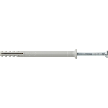 Deze Fischer-nagelplug N6x80Z, verpakt per 50 stuks, gebruikt je voor het monteren van houten regelwerk op verschillende materialen. Denk aan betonnen wanden, wandverbindingen en metalen profielen. Gebruik voor het boren van het gat waarin je de nagelplug aanbrengt, een boor met een diameter van 6mm. Vervolgens breng je de 80mm lange nagelplug aan en schroef je de schroef van 85mm met een diameter van 4mm erin. Na montage is deze nagelplug met een lengte van 8cm, afhankelijk van het materiaal waarin je de plug bevestigt, te belasten tot maximaal 20kg. Je koopt de Fischer-nagelplug N6x80Z per 50 nagelpluggen.