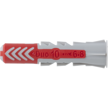 De Duopowerplug 10x50 mm is geschikt voor zowel voor- als doorsteekmontage. Meer materiaal in de plug voor nog meer spreiding en nóg hogere belastbaarheid. De combinatie van een harde en zachte kunststof garandeert een optimaal gebruiksgemak, zeer gemakkelijke plaatsing en bovendien een duidelijke feedback wanneer de plug correct geplaatst is. Geschikt voor hout-, spaanplaat- én stokschroeven. Schroeflengte = pluglengte + dikte aanbouwdeel + 1x schroefdiameter. In het geval van plaatmateriaal dient het gladde deel van de schroef niet langer te zijn dan de dikte van het aanbouwdeel. De combinatie van 2 materialen en 3 werkingsprincipes maakt de DUOPOWER de juiste plug voor alle omstandigheden. De plug activeert het optimale werkingsprincipe - spreiden, vouwen, knopen - afhankelijk van de ondergrond. Best mogelijke terugkoppeling van de plug, het is duidelijk voelbaar wanneer de schroef goed is aangedraaid. De korte en compacte plug staat voor minimale boortijd en bespaart daarmee materiaal én tijd. De dunne kraag voorkomt dat de plug in het boorgat verdwijnt bij gebruik in holle wanden, terwijl doorsteekmontage nog steeds mogelijk blijft. De vertande anti-rotatievleugels voorkomen dat de plug tijdens montage in het boorgat meedraait. Verpakking is 8 stuks.