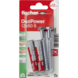 De Duopowerplug 12x60 mm met zeskantschroef is geschikt voor zowel voor- als doorsteekmontage. Meer materiaal in de plug voor nog meer spreiding en nóg hogere belastbaarheid. De combinatie van een harde en zachte kunststof garandeert een optimaal gebruiksgemak, zeer gemakkelijke plaatsing en bovendien een duidelijke feedback wanneer de plug correct geplaatst is. Geschikt voor hout-, spaanplaat- én stokschroeven. Schroeflengte = pluglengte + dikte aanbouwdeel + 1x schroefdiameter. In het geval van plaatmateriaal dient het gladde deel van de schroef niet langer te zijn dan de dikte van het aanbouwdeel. De combinatie van 2 materialen en 3 werkingsprincipes maakt de DUOPOWER de juiste plug voor alle omstandigheden. De plug activeert het optimale werkingsprincipe - spreiden, vouwen, knopen - afhankelijk van de ondergrond. Best mogelijke terugkoppeling van de plug, het is duidelijk voelbaar wanneer de schroef goed is aangedraaid. De korte en compacte plug staat voor minimale boortijd en bespaart daarmee materiaal én tijd. De dunne kraag voorkomt dat de plug in het boorgat verdwijnt bij gebruik in holle wanden, terwijl doorsteekmontage nog steeds mogelijk blijft. De vertande anti-rotatievleugels voorkomen dat de plug tijdens montage in het boorgat meedraait. Verpakking is 2 stuks.
