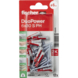 De Duopowerplug 6x30 mm met rondkopschroef is geschikt voor zowel voor- als doorsteekmontage. Meer materiaal in de plug voor nog meer spreiding en nóg hogere belastbaarheid. De combinatie van een harde en zachte kunststof garandeert een optimaal gebruiksgemak, zeer gemakkelijke plaatsing en bovendien een duidelijke feedback wanneer de plug correct geplaatst is. Geschikt voor hout-, spaanplaat- én stokschroeven. Schroeflengte = pluglengte + dikte aanbouwdeel + 1x schroefdiameter. In het geval van plaatmateriaal dient het gladde deel van de schroef niet langer te zijn dan de dikte van het aanbouwdeel. De combinatie van 2 materialen en 3 werkingsprincipes maakt de DUOPOWER de juiste plug voor alle omstandigheden. De plug activeert het optimale werkingsprincipe - spreiden, vouwen, knopen - afhankelijk van de ondergrond. Best mogelijke terugkoppeling van de plug, het is duidelijk voelbaar wanneer de schroef goed is aangedraaid.De korte en compacte plug staat voor minimale boortijd en bespaart daarmee materiaal én tijd. De dunne kraag voorkomt dat de plug in het boorgat verdwijnt bij gebruik in holle wanden, terwijl doorsteekmontage nog steeds mogelijk blijft. De vertande anti-rotatievleugels voorkomen dat de plug tijdens montage in het boorgat meedraait. Verpakking is 12 stuks.