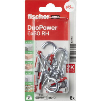 Fischer Universeelplug DuoPower 6x30mm met ronde schroefhaak 6 stuks