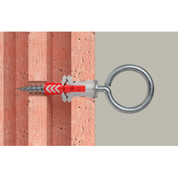 De Duopowerplug 8x40mm met ooghaak is geschikt voor zowel voor- als doorsteekmontage. Meer materiaal in de plug voor nog meer spreiding en nóg hogere belastbaarheid. De combinatie van een harde en zachte kunststof garandeert een optimaal gebruiksgemak, zeer gemakkelijke plaatsing en bovendien een duidelijke feedback wanneer de plug correct geplaatst is. Geschikt voor hout-, spaanplaat- én stokschroeven. Schroeflengte = pluglengte + dikte aanbouwdeel + 1x schroefdiameter. In het geval van plaatmateriaal dient het gladde deel van de schroef niet langer te zijn dan de dikte van het aanbouwdeel. De combinatie van 2 materialen en 3 werkingsprincipes maakt de DUOPOWER de juiste plug voor alle omstandigheden. De plug activeert het optimale werkingsprincipe - spreiden, vouwen, knopen - afhankelijk van de ondergrond. Best mogelijke terugkoppeling van de plug, het is duidelijk voelbaar wanneer de schroef goed is aangedraaid. De korte en compacte plug staat voor minimale boortijd en bespaart daarmee materiaal én tijd. De dunne kraag voorkomt dat de plug in het boorgat verdwijnt bij gebruik in holle wanden, terwijl doorsteekmontage nog steeds mogelijk blijft. De vertande anti-rotatievleugels voorkomen dat de plug tijdens montage in het boorgat meedraait. Verpakking is 2 stuks.