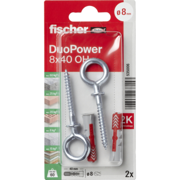 Fischer Universeelplug DuoPower 8x40mm met ooghaak 2 stuks