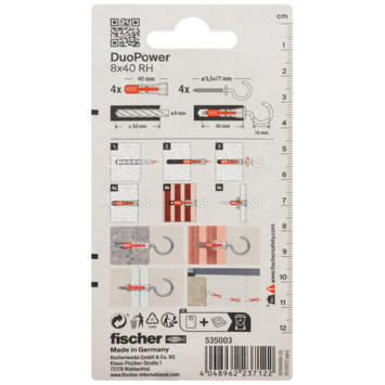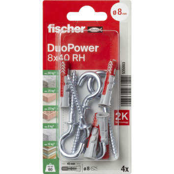 Fischer Universeelplug DuoPower 8x40mm met ronde haak 2 stuks