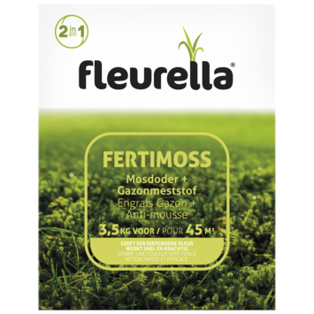 Deze minerale gazonmeststof met 4 % stikstof en ijzer heeft een snelle werking tegen mos in het gazon. Deze meststof in fijne korrelvorm zorgt ervoor dat het mos heel snel zwart wordt en afsterft. Het afgestorven mos kan verwijderd worden door te harken of verticuteren vanaf 7 dagen na de behandeling. Een herbehandeling kan nodig zijn bij sterke mosgroei of terugkeer van het mos. Fertimoss bevat ook het voedingselement stikstof dat de groei van het gras bevordert waardoor de kale plekken in het gazon, die achterblijven na het afsterven en/of uitharken (verticuteren) van het mos, sneller dichtgroeien.