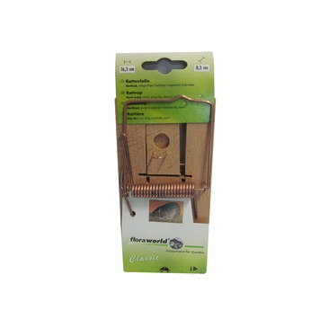 Floraworld produceert klassieke rattenvallen uit stevig hardhout. Plaats het lokaas onder de roestbestendige beugel en laat de val zijn werk doen. Nadat de val toegeklapt is, kan je de rat veilig verwijderen en de val hergebruiken. Raak je de rat liever niet aan? Dan gooi je deze voordelige val weg en gebruik je de een andere. Gebruik biociden veilig. Lees vóór gebruik eerst het etiket en de productinformatie.