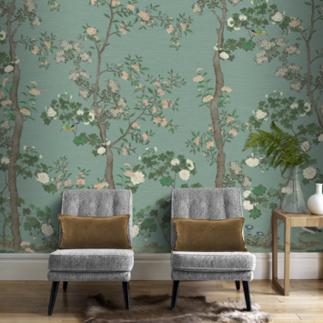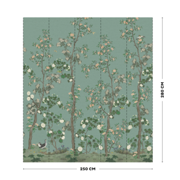 Met het Fotobehang Rachelle sage (112127) van Art for the home maak je van een saaie muur in je kamer een echte eyecatcher. Dit fotobehang met landelijk fleurig patroon is gedrukt op vliesbehang. Het wordt geleverd in 5 banen van 50cm. Baan één past rapportloos aan baan vijf dus is te verlengen tot elke gewenste breedte. Let op! dat de batchnummers hetzelfde zijn. Vliesbehang breng je heel gemakkelijk aan en is ook gemakkelijk te verwijderen, zonder daar een behangtafel of afstomer bij nodig te hebben. Je lijmt eenvoudig de muur in en het behang kan worden geplakt. Voor beste resultaat dienen de te beplakken oppervlakken droog, egaal van kleur en vlak te zijn. Kortom, kies voor het Fotobehang Rachelle sage (112127) wanneer je op zoek bent naar een gemakkelijke en snelle manier om jouw kamer een nieuwe uitstraling te geven volgens de laatste woontrends.