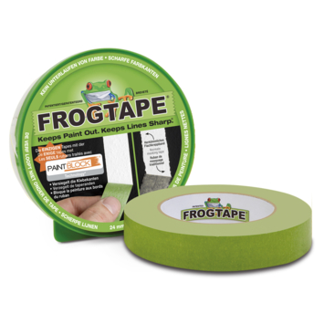 Bij Frogtape afplaktape 41,1mx24mm groen kruipt de acryl muurverf of lak niet onder de tape, waardoor vervelende verfvlekken verleden tijd zijn. Zowel op een net geverfde oppervlakken als op ruw hout, Frogtape is overal voor te gebruiken. Het zorgt voor scherpe kanten bij acryllak op onbehandelde beuken panelen.