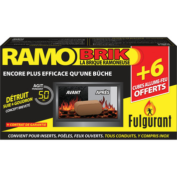 De ramobrik van Fulgurant vernietigt teer en roet in 50 minuten zonder tussenkomst van een schoorsteenveger. Gebruik om je (inbouw)kachel of open haard in geen tijd proper te maken. NU met gratis aanmaakblokjes!