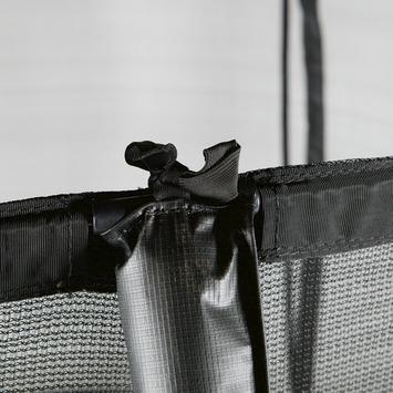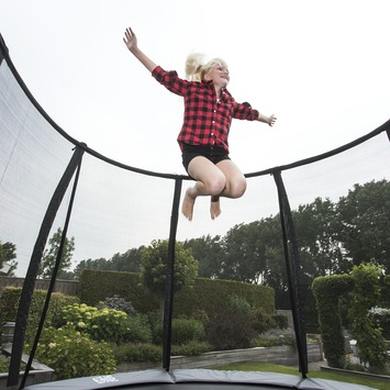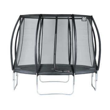 Bezorg je kind(eren) uren springplezier met de Game On Sport zwarte trampoline. De trampoline heeft een diameter van 244 cm en is voorzien van een frame van rondom gebogen palen met een 160 cm hoog veiligheidsnet zodat kinderen veilig kunnen spelen op de trampoline. Het maximum draaggewicht bedraagt 50 kg. Daarnaast is de trampoline voorzien van 48 conische anti-roestveren van 16,5 cm en een 32 cm breed randkussen uit eenvoudig schoon te maken rubber.
