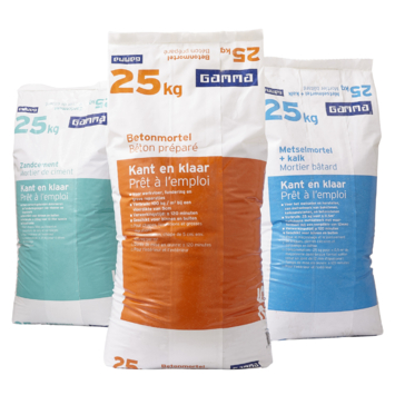 Bij GAMMA vind je verschillende soorten cement en mortel zoals deze betonmortel (25 kilogram) van het eigen merk. De kant-en-klare betonmortel is geschikt voor een werkvloer, fundering en grove reparaties. Verwerkingstijd: 120 minuten.