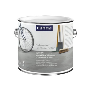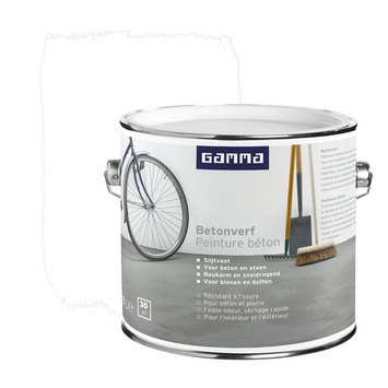 Slijtvaste matte betonverf van GAMMA. De verf is ideaal geschikt voor het schilderen van vloeren en wanden van beton of andere steenachtige materialen zoals balkons, trappen en trottoirtegels. De verf is watergedragen, dus reukarm en sneldrogend. Deze betonverf is zowel binnen als buiten te gebruiken.