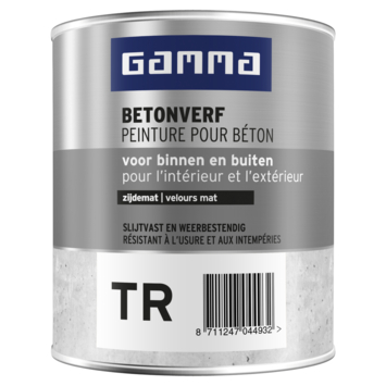 GAMMA Betonverf is een slijtvaste, zijdematte betonverf op waterbasis. Geschikt voor het schilderen van vloeren en wanden van beton of andere steenachtige materialen zoals balkons, trappen en trottoirtegels. De sneldrogende verf is slijtvast en weerbestendig. Gemorste olie, brandstof en zout water direct verwijderen. Niet bestand tegen warme autobanden. Zowel binnen als buiten te gebruiken. Liever een ander kleurtje? Betonverf is in elke gewenste kleur te mengen.