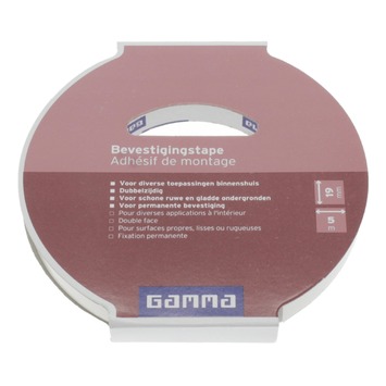 GAMMA heeft tape voor élke klus. Elke klus? Uhu! Neem bijvoorbeeld deze bevestigingstape van 19 mm breed en 5 meter lang die je beste vriend is als je kleine en grote dingen stevig wil bevestigen.