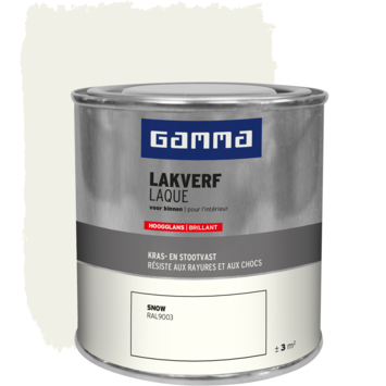 De GAMMA binnenlak hoogglans RAL 9003 snow 250 ml is geschikt voor het schilderen van onder andere deuren, kozijnen en meubels binnenshuis. Deze kras- en stootvaste lak beschermt oppervlakken goed en geeft ze een strakke hoogglans afwerking. De lak is op waterbasis, waardoor hij geurarm is en minder snel vergeelt. Je kunt hem direct op hout aanbrengen, en in combinatie met een geschikte grondverf ook op metaal en kunststof. De verf is stofdroog na 1 uur en overschilderbaar na 12 uur.