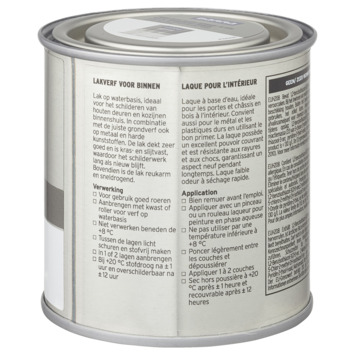 Voor een optimaal resultaat van de GAMMA binnenlak behandel je de ondergrond eerst met GAMMA grondverf voor binnen. Het blik heeft een inhoud van 250 milliliter, dit is voldoende voor een oppervlakte van ongeveer 3 m². Drie uur na het aanbrengen van de verf is deze reeds stofdroog, na 24 uur kan je de volgende laag aanbrengen. Verwerk de verf bij temperaturen tussen de 8 en 25°C.