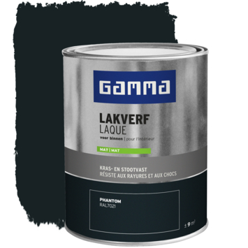 De GAMMA binnenlak mat RAL 7021 phantom 750 ml is geschikt voor het schilderen van onder andere deuren, kozijnen en meubels binnenshuis. Deze kras- en stootvaste lak beschermt oppervlakken goed en geeft ze een strakke matte afwerking. De lak is op waterbasis, waardoor hij geurarm is en minder snel vergeelt. Je kunt hem direct op hout aanbrengen, en in combinatie met een geschikte grondverf ook op metaal en kunststof. De verf is stofdroog na 1 uur en overschilderbaar na 12 uur.