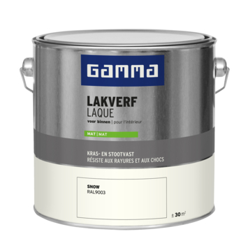 De GAMMA binnenlak mat RAL 9003 snow 2,5 liter is geschikt voor het schilderen van onder andere deuren, kozijnen en meubels binnenshuis. Deze kras- en stootvaste lak beschermt oppervlakken goed en geeft ze een strakke matte afwerking. De lak is op waterbasis, waardoor hij geurarm is en minder snel vergeelt. Je kunt hem direct op hout aanbrengen, en in combinatie met een geschikte grondverf ook op metaal en kunststof. De verf is stofdroog na 1 uur en overschilderbaar na 12 uur.