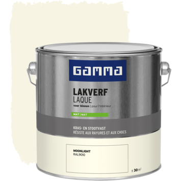 De GAMMA binnenlak mat RAL 9010 moonlight 2,5 liter is geschikt voor het schilderen van onder andere deuren, kozijnen en meubels binnenshuis. Deze kras- en stootvaste lak beschermt oppervlakken goed en geeft ze een strakke matte afwerking. De lak is op waterbasis, waardoor hij geurarm is en minder snel vergeelt. Je kunt hem direct op hout aanbrengen, en in combinatie met een geschikte grondverf ook op metaal en kunststof. De verf is stofdroog na 1 uur en overschilderbaar na 12 uur.