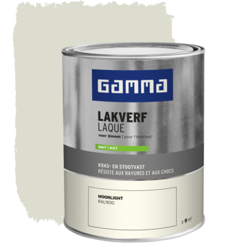 De GAMMA binnenlak mat RAL 9010 moonlight 750 ml is geschikt voor het schilderen van onder andere deuren, kozijnen en meubels binnenshuis. Deze kras- en stootvaste lak beschermt oppervlakken goed en geeft ze een strakke matte afwerking. De lak is op waterbasis, waardoor hij geurarm is en minder snel vergeelt. Je kunt hem direct op hout aanbrengen, en in combinatie met een geschikte grondverf ook op metaal en kunststof. De verf is stofdroog na 1 uur en overschilderbaar na 12 uur.