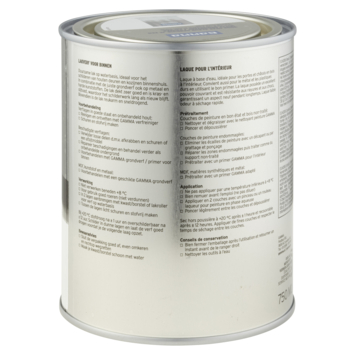 Deze GAMMA binnenlak mat 750 ml wit is een verf op waterbasis. Verf op waterbasis is de beste keus voor binnenshuis. Het is geurarm en blijft langer mooi van kleur. Deze kras- en stootvaste verf is geschikt voor hout, en in combinatie met de daarvoor geschikte grondverf, ook op metaal en kunststoffen. Voor een optimaal resultaat van de GAMMA binnenlak behandel je de ondergrond eerst met de GAMMA grondverf voor binnen. Het blik heeft een inhoud van 750 milliliter, dit is voldoende voor een oppervlakte van ongeveer 9 m². Een uur na het aanbrengen van de verf is deze reeds stofdroog, na 20 uur kan je de volgende laag aanbrengen. Verwerk de verf bij temperaturen tussen de 8 en 25°C. De lak is te gebruiken als afwerking van nieuw onbehandelde delen, maar ook op bestaand schilderwerk of om meubels een nieuwe uitstraling te geven. De binnenlak is eenvoudig aan te brengen met een kwast of lakroller voor verf op waterbasis. Deze koop je bij de dichtstbijzijnde GAMMA of via de webshop. Wij hebben de 20 kleuren voor jou klaar staan in hoogglans, zijdeglans en mat. Zowel in muur- als lakverf. Mocht de kleur die je zoekt er niet bij staan is het altijd mogelijk om bij onze verfadviseur speciaal jou kleur te laten mengen. Zo creëer je altijd de woonsfeer die bij jou past, romantisch, industrieel, sereen of heel kleurrijk, alles is mogelijk. Kortom deze lak is een prima keuze om het jouw interieur een nieuwe uitstraling te geven.