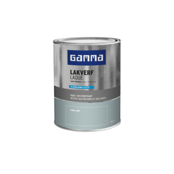 De GAMMA binnenlak zijdeglans cool sky 750 ml is geschikt voor het schilderen van onder andere deuren, kozijnen en meubels binnenshuis. Deze kras- en stootvaste lak beschermt oppervlakken goed en geeft ze een strakke zijdeglans afwerking. De lak is op waterbasis, waardoor hij geurarm is en minder snel vergeelt. Je kunt hem direct op hout aanbrengen, en in combinatie met een geschikte grondverf ook op metaal en kunststof. De verf is stofdroog na 1 uur en overschilderbaar na 12 uur.